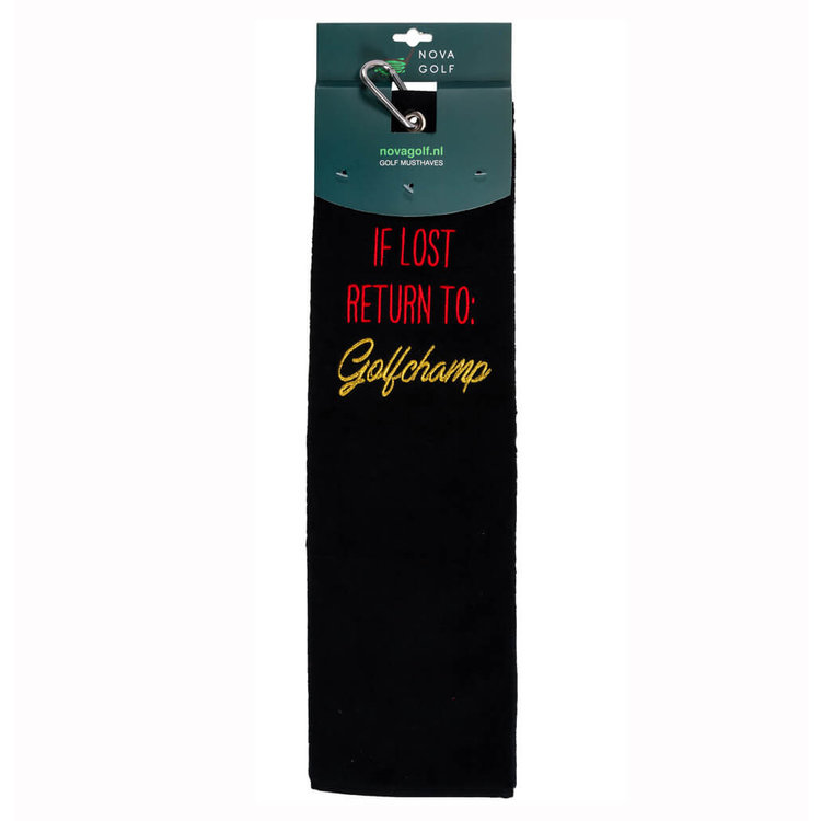 Beoordeel Nova Golf 'If Lost Return To Golfchamp' Golfhanddoek - Zwart