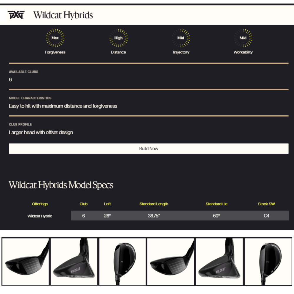 Deze vergevingsgezinde PXG Wildcat hybride club #6 (ook wel rescue club genoemd) heeft een hoge loft (28°) om de bal gemakkelijker de lucht in te krijgen waarbij het ultradunne clubface de balsnelheid maximaliseert. 'Precision Weighting' zorgt daarbij voor een optimale balans en laag zwaartepunt wat de prestaties en het speelgemak ten goede komt. De club is eenvoudige speelbaar garandeert eenvoud en doelmatigheid.