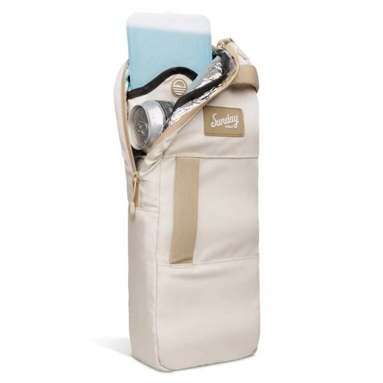 Sunday Golf maakt naast prachtige kwaliteit design-golftassen ook deze praktische créme Sunday Golf Frosty Cooler Bag. Bedoeld voor voor golfers die houden van koele drankjes tijdens hun golfrondje. Voorzien van handgrepen en genoeg ruimte voor 6 blikjes. Compleet met ruimte koelelementen en ook geschikt voor warmhouden van drank!