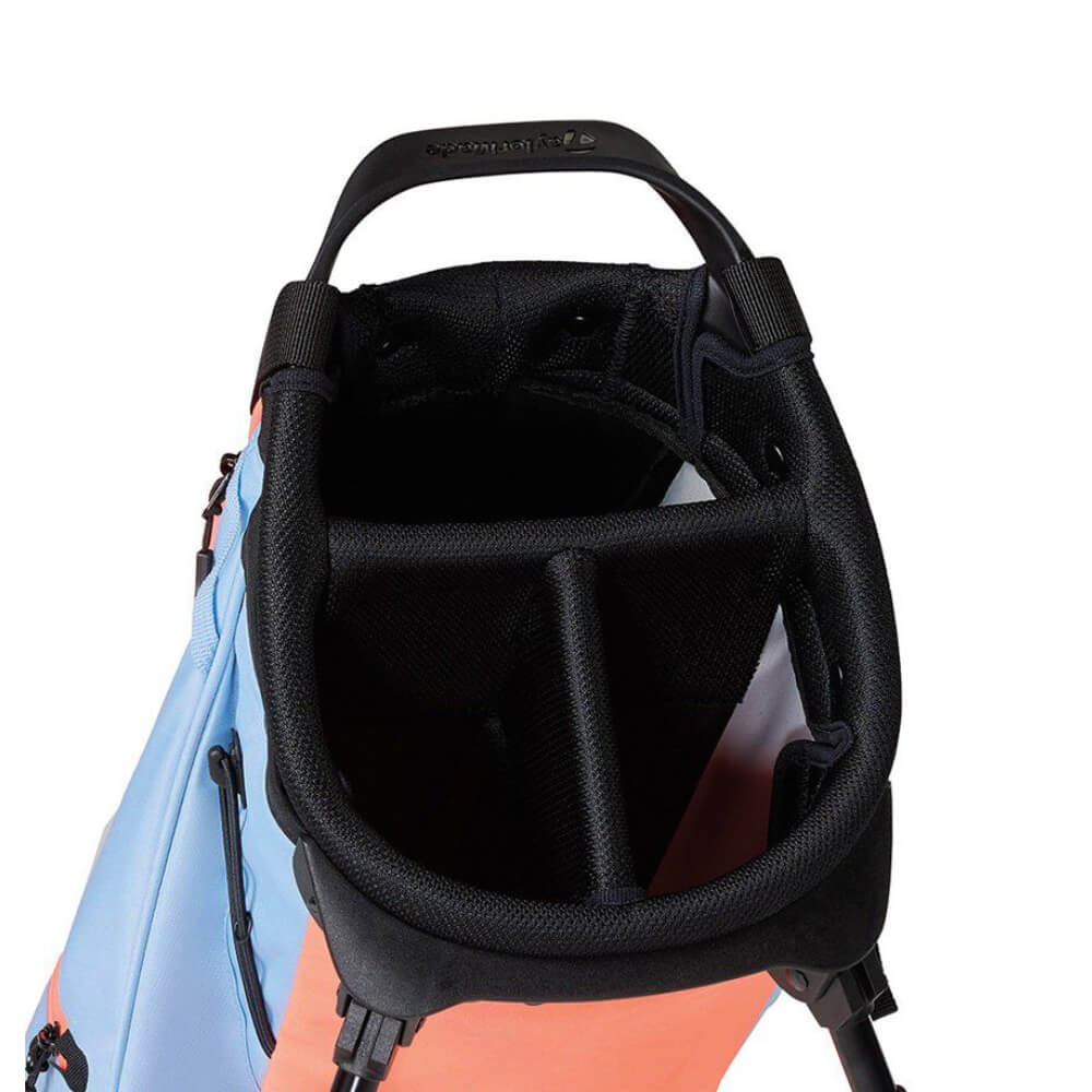 Met een gewicht van slechts 1,4 kg is deze lichtblauw met oranje TaylorMade FlexTech Carry Standbag 2025 vederlicht model uit de meest compacte serie golftassen van dit merk. Handzaam en gemaakt van topkwaliteit materiaal waardoor de term Premium zeker op zijn plaatst is! Het zeer comfortabele 4-punts Double Strap draagsysteem, de velours afwerking van de clubverdeler en het gepatenteerde 'release-systeem' (wat de tas ook geschikt maakt voor op de trolley) onderstrepen de luxe.