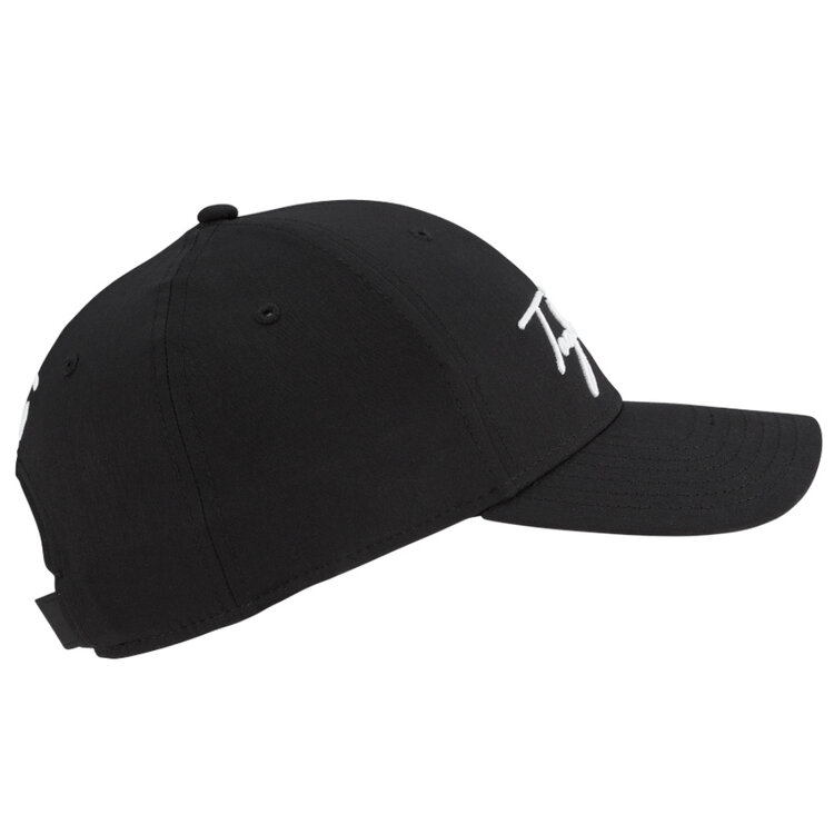 De TaylorMade Ladies Script Seeker Golfcap in het zwart is een moderne pet met een nieuw gescript TaylorMade logo. Het nieuwe logo heeft een vloeiend cursief lettertype dat netjes aan de voorkant geborduurd is. Aan de achterkant kun je de pet verstellen.