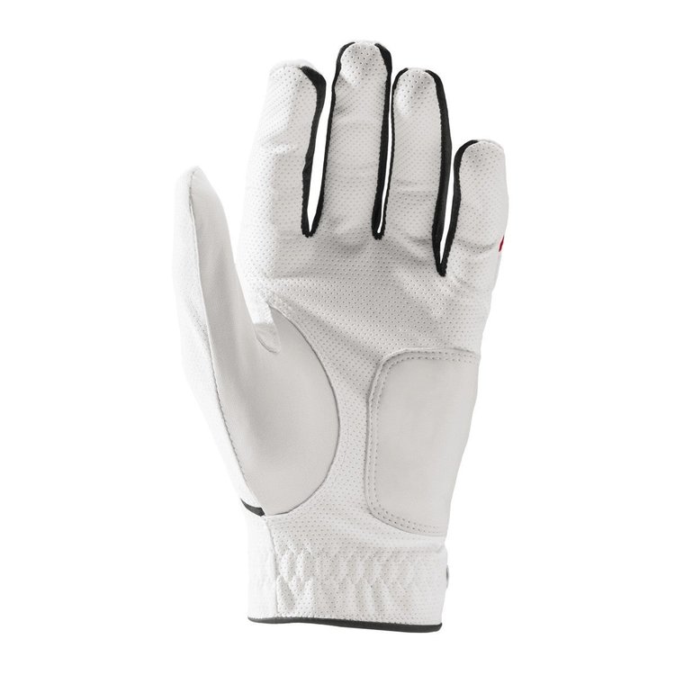 Deze fijne, zachte Grip Plus golfhandschoen van Wilson brengt comfort en grip. Super combinatie van Cabretta leder en High-tech synthetisch leder. LET OP: VOOR LINKSHANDIGE GOLFERS!