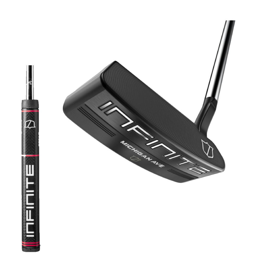 Deze Infinite Windy City putters 2024 worden standaard geleverd met de MidSize Wilson puttergrip, Weili steel shaft puttershaft en rechte 'Slant' clubhoofd shaft-aansluiting.